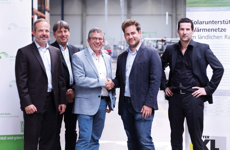 Bildunterschrift 1: v.l.n.r.: Thomas Brümmer, Prokurist AVR Energie, Thomas Neuer, Projektingenieur AVR Energie, Peter Mülbaier, Geschäftsführer AVR UmweltService, Moritz Ritter, Geschäftsführer Ritter Energie- und Umwelttechnik, Christoph Bühler, Bereichsleiter Vertrieb Ritter Energie- und Umwelttechnik